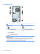 - vPro olmayan sistemler Tablo 1-3 Arka panel bileşenleri Bileşen Bileşen 1 Ses giriş jakı 6 Güçlü ses aygıtları için ses çıkışı jakı 2 Çift Modlu DisplayPort monitör konektörleri (2) 7 RJ-45 (ağ) jakı 3 İsteğe bağlı bağlantı noktası 8 Seri bağlantı noktası (yalnızca belirli ürünlerde) 4 S4/S5'ten Uyandırma özelliğine sahip USB bağlantı noktaları (4) 9 Güç kablosu konektörü 5 USB SuperSpeed bağlantı noktaları (2) NOT: Bir USB klavye kullanıyorsanız HP klavyeyi S4/S5'ten Uyandırma özelliği