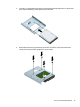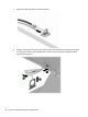 6. Під’єднайте кабель живлення (1) і кабель даних (2) до рознімів на задній панелі жорсткого диска.