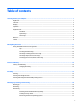 Table of contents 1 Getting to know your computer ...................................................................................................................... 1 Right side ............................................................................................................................................................... 1 Left side ..............................................................................................................................................................