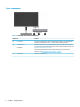 Front components Table 1-2 Front components and their descriptions Component Function (1) Menu button Press to open the OSD menu, select a menu item from the OSD, or close the OSD menu. An indicator is activated above the Menu button when the OSD menu is open. (2) Function buttons When the OSD menu is open, press the buttons to navigate through the menu. Lighted icons above the buttons indicate their functions. For a description of these functions, see Using the function buttons on page 19.