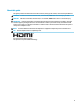 ● Connect one end of an HDMI cable to the HDMI port on the rear of the monitor and the other end to the HDMI port on the source device. ● Connect one end of a USB Type-C cable to the USB Type-C port on the rear of the monitor and the other end to the USB Type-C port on the source device. (Use only the HP-approved USB Type-C cable provided with the monitor.) NOTE: The monitor’s USB Type-C port provides network, data, video, and power delivery (up to 65 W).