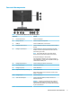 Rear and side components Table 1-1 Rear and side components and their descriptions Component Function (1) DC Power IN connector Connects an AC adapter. (2) Security cable slot Connects an optional security cable. (3) HDMI port Connects an HDMI cable to a source device. (4) DisplayPort OUT connector Connects a DisplayPort cable to a secondary monitor for daisychaining. (5) USB Type-C upstream port Connects a USB Type-C cable to an HP notebook or desktop computer.