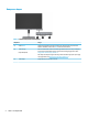 Komponen depan Tabel 1-2 Komponen depan dan keterangannya Komponen Fungsi (1) Tombol Menu Tekan untuk membuka menu OSD, pilih item menu dari OSD, atau tutup menu OSD. Indikator diaktifkan di atas tombol Menu ketika menu OSD terbuka. (2) Tombol fungsi Jika menu OSD terbuka, tekan untuk menavigasi melalui menu. Ikon-ikon pencahayaan di atas tombol menunjukkan fungsinya. Untuk uraian tentang penggunaan ini, lihat Menggunakan tombol fungsi pada hal. 19.