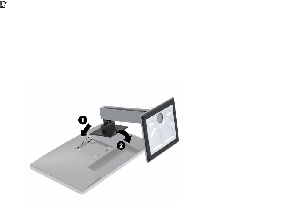 3. Spustite donju stranu montažne ploče stalka u udubljenje dok se ne uklopi na mjesto (2).