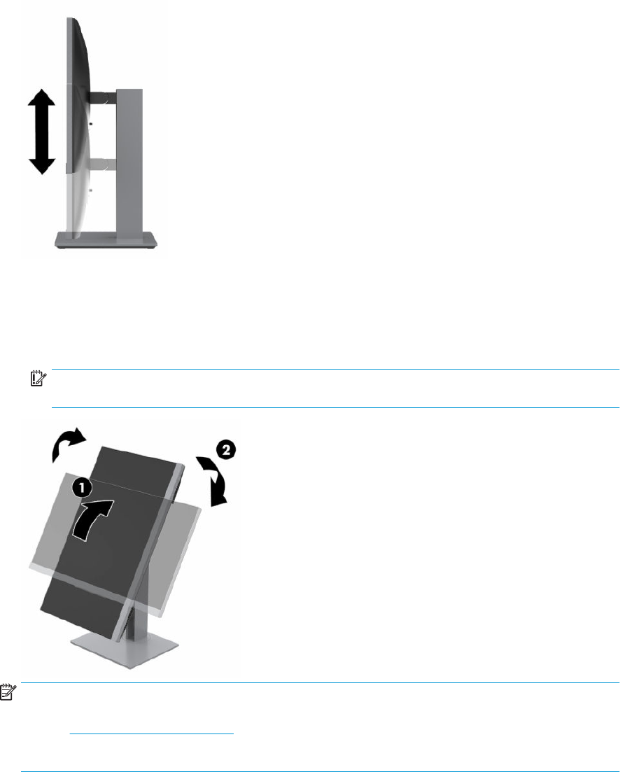 a. Postavite monitor na punu visinu i nagnite ga prema nazad do kraja (1).