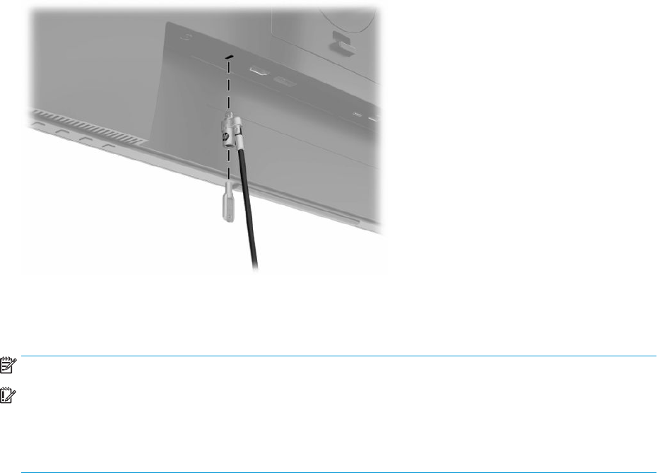 Možete pričvrstiti monitor za nepomičan predmet s opcionalnim sigurnosnim kablom koji se može nabaviti od