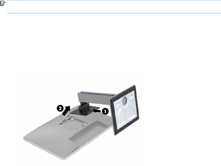 4. Ljuljajte donju stranu postolja prema gore dok se pločica za montažu ne oslobodi iz ureza u monitoru