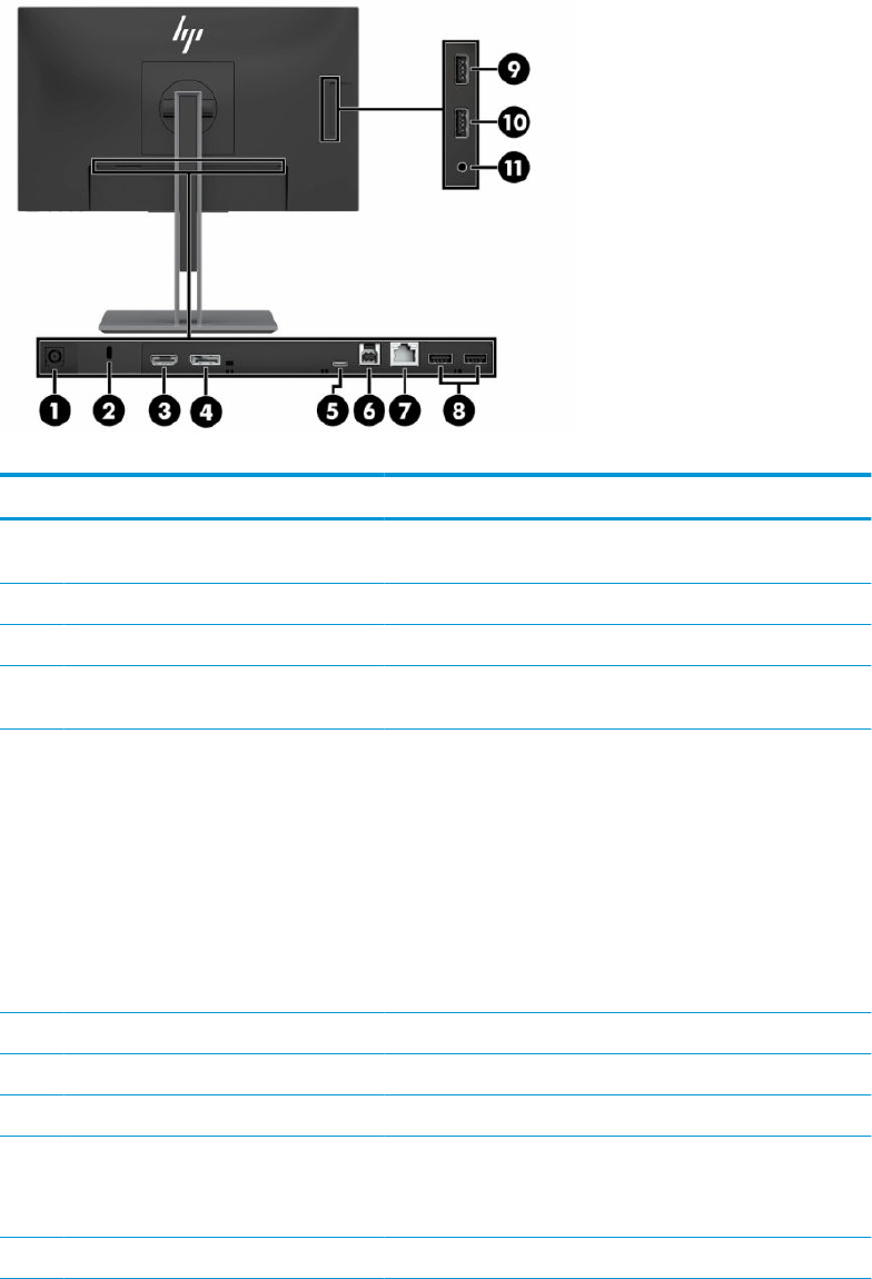 (5) Priključak za slanje USB Type-C Povezuje USB Type-C kabl na HP prijenosni računar ili stolni