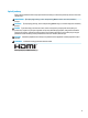 ● Vieną HDMI kabelio galą prijunkite prie galinėje monitoriaus dalyje esančio HDMI prievado, o kitą – prie šaltinio įrenginio HDMI prievado. ● Vieną C tipo USB kabelio galą prijunkite prie galinėje monitoriaus dalyje esančio C tipo USB prievado, o kitą – prie šaltinio įrenginio C tipo USB prievado. (Naudokite tik kartu su monitoriumi parduodamą HP patvirtintą C tipo USB kabelį.
