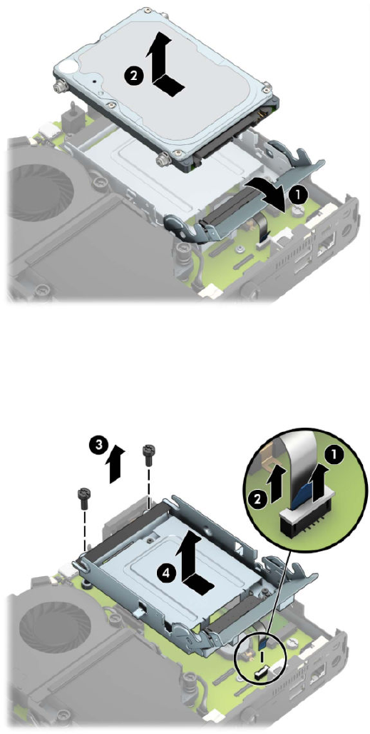 твърдия диск към шасито. Плъзнете клетката на твърдия диск назад, повдигнете я извадете