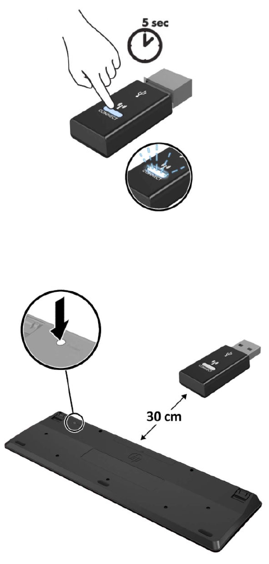 - Синхронизиране на безжичната оптична клавиатура или мишка