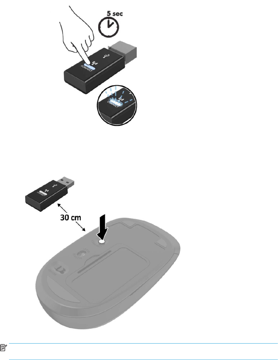 долната страна на мишката за пет до десет секунди. След като освободите бутона за свързване,