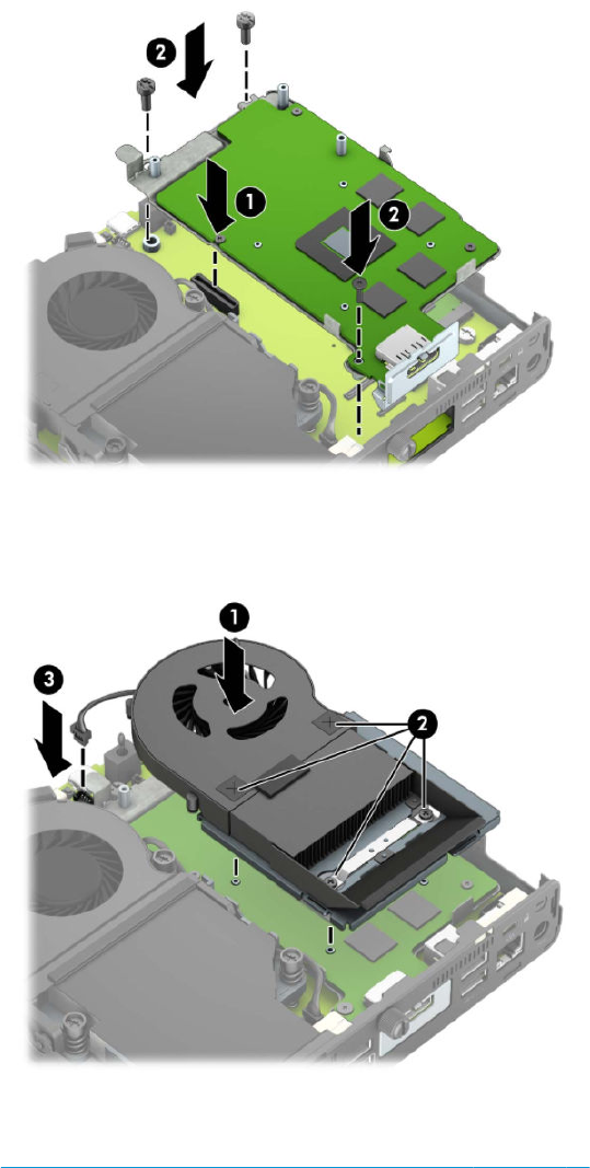 vier schroeven (2) en sluit vervolgens de kabel van het ventilatorgedeelte (3) aan op de