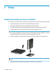 2 Setup Changing from desktop to tower orientation The computer can be used in a tower orientation with an optional tower stand that can be purchased from HP. 1. Remove/disengage any security devices that prohibit opening the computer. 2. Remove all removable media, such as a USB flash drive, from the computer. 3. Turn off the computer properly through the operating system, and turn off any external devices. 4. Disconnect the power cord from the AC outlet and disconnect any external devices.