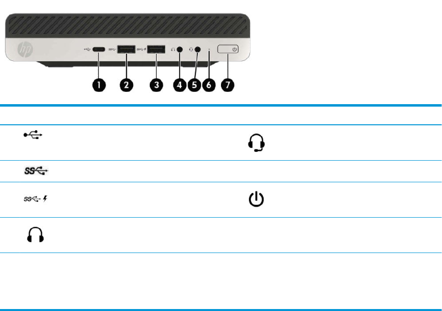 1 Port USB Type-C 5 Kombinovaný konektor zvukového výstupu