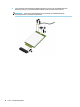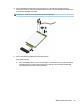 b. Irrota kiintolevyn kaapelikiinnike emolevyn liittimestä (1). Irrota kiintolevykaapeli (2) emolevystä