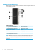 Priekšējā paneļa komponenti Diskdziņa konfigurācija var atšķirties atkarībā no modeļa. Dažiem modeļiem ir nosegpanelis, kas sedz vienu vai vairākus diskdziņu nodalījumus. Priekšējā paneļa komponenti 1. 5,25 collu pusaugstā diskdziņa nodalījums (aiz nosegpaneļa) 7 Audio izvades (austiņu) ligzda 2. Plānais optiskais diskdzinis (papildaprīkojums) 8 USB ports ar HP Sleep and Charge 3. SD karšu lasītājs (papildaprīkojums) 9 USB ports 4. Strāvas poga 10 USB SuperSpeed porti (2) 5.