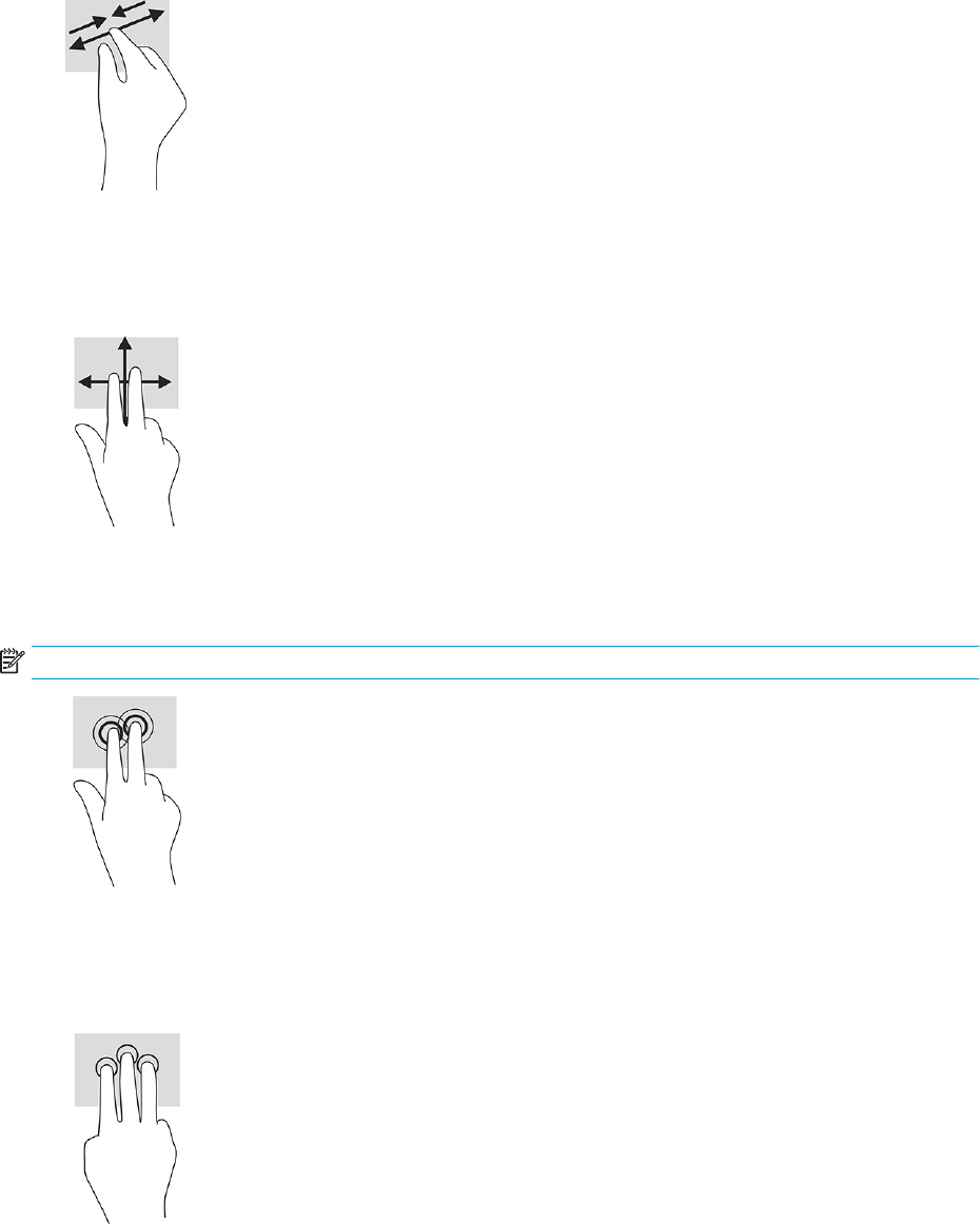 - Prevlačenje pomoću tri prsta (na dodirnoj tabli i preciznoj dodirnoj tabli)