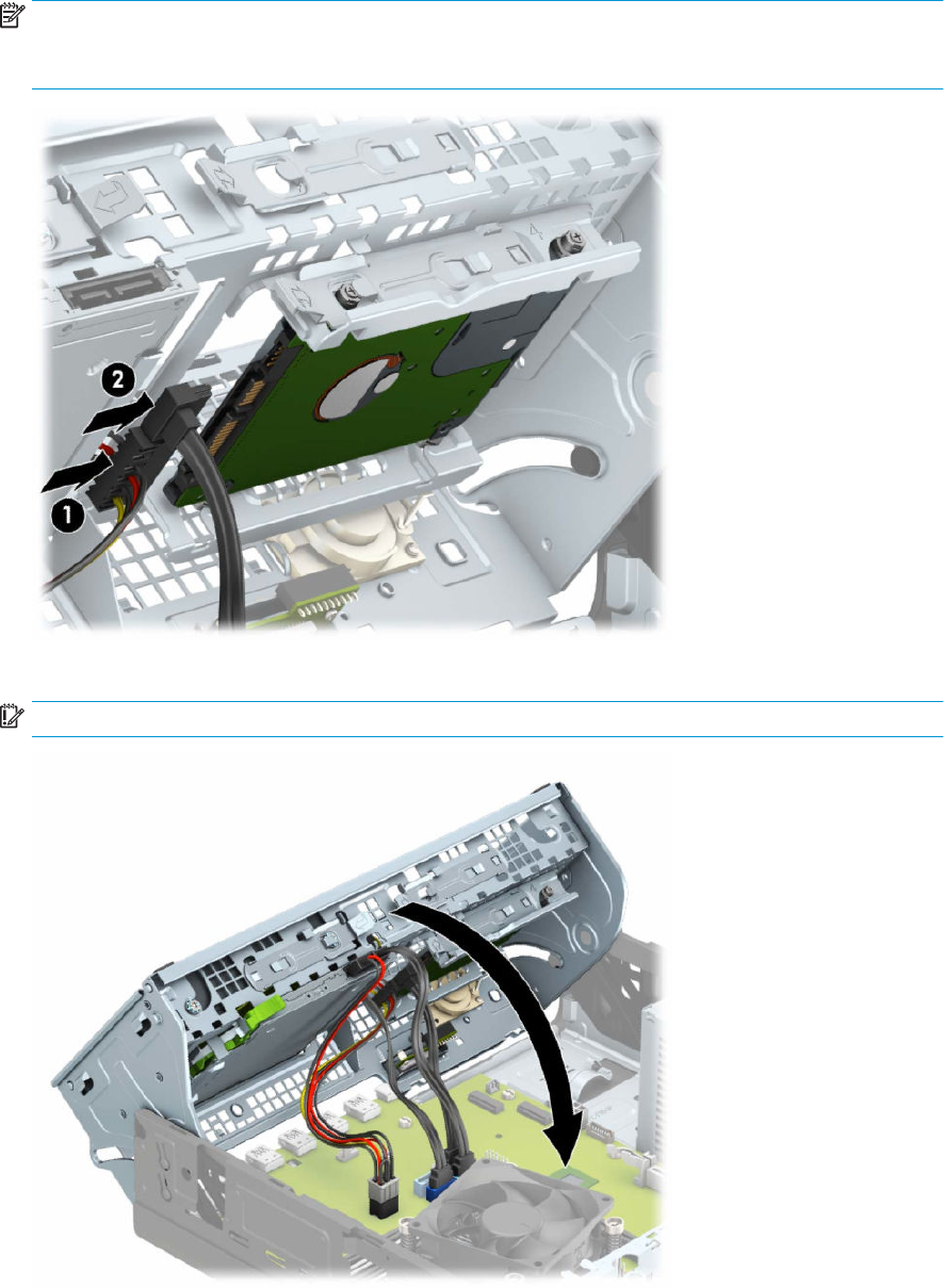 8. 전원 케이블(1) 및 데이터 케이블(2)을 하드 드라이브의 뒷면에 연결합니다.