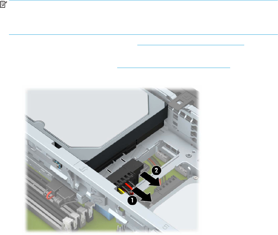 4. Lepaskan kabel daya (1) dan kabel data (2) dari bagian belakang hard drive.