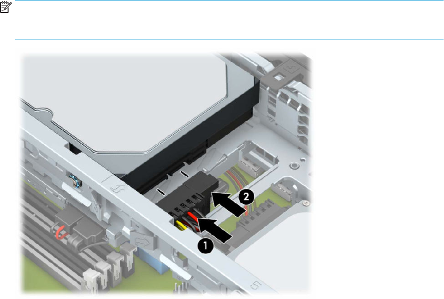 6. Sambungkan kabel daya (1) dan kabel data (2) ke bagian belakang hard drive.