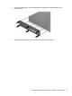 datora (1) un pabīdiet paneli (2) uz priekšu. Atbrīvošanas svira automātiski pārvietosies atpakaļ pa labi un