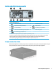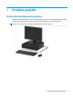 Horizontaliai padėto kompiuterio statymas vertikaliai Naudodami pasirinktinį vertikalaus pastatymo stovą, kurį galite įsigyti iš HP, mažąjį kompiuterį galite naudoti pastatytą vertikaliai. PASTABA: Jei norite, kad vertikaliai pastatytas kompiuteris stovėtų tvirtai, HP rekomenduoja naudoti vertikaliai kompiuterio padėčiai skirtą stovą. 1. Nuimkite ir (arba) atkabinkite visus kompiuterio dėžę pajudinti trukdančius saugos įrenginius. 2.