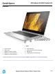QuickSpecs HP EliteBook x360 830 G5 Notebook PC Overview At a Glance • • • • • • • • • • • • • • Eye catching, Aluminum x360 design with four usage modes that is 0.66 inches (1.69 cm) thin and with a starting weight of 2.97 lbs. (1.35 Kgs) Choice of 8th Generation Intel® Core™ i3, i5, or i7 Processors Optional ultrabright, anti-glare touch displays with ambient light sensor Choice of displays: - 33.8 cm (13.