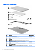 3 Illustrated parts catalog NOTE: HP continually improves and changes product parts. For complete and current information on supported parts for your computer, go to http://partsurfer.hp.com, select your country or region, and then follow the on-screen instructions. Locating the serial number, product number, and model number The tablet serial number (1), product name (2), product model (3), and product number (4) are located on the tablet bottom edge.