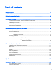 Table of contents 1 Product description ........................................................................................................................................... 1 2 External component identification ..................................................................................................................... 2 3 Illustrated parts catalog .....................................................................................................................................