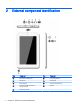 2 2 External component identification Item Component Item Component (1) Micro SD Card Reader slot (6) Front-facing webcam (2) Microphone (7) Power button (3) Micro USB port (8) Volume control buttons (2) (4) Audio-out (headphone)/Audio-in (microphone) jack (9) Speaker (5) Rear-facing webcam Chapter 2 External component identification