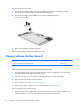 1. Release the ZIF connector (1) to which the front-facing webcam cable is attached, and then