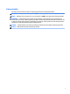 Varnostno opozorilo OPOZORILO! Da zmanjšate možnost poškodb, povezanih s pregretjem računalnika, slednjega ne odlagajte neposredno v svoje naročje in ne ovirajte zračnih ventilatorjev računalnika. Računalnik uporabljajte samo na trdnih in ravnih površinah. Pretoka zraka ne smejo ovirati trdi predmeti, kot je morebitni tiskalnik v neposredni bližini, ali mehki predmeti, npr. blazine, odeje ali oblačila.