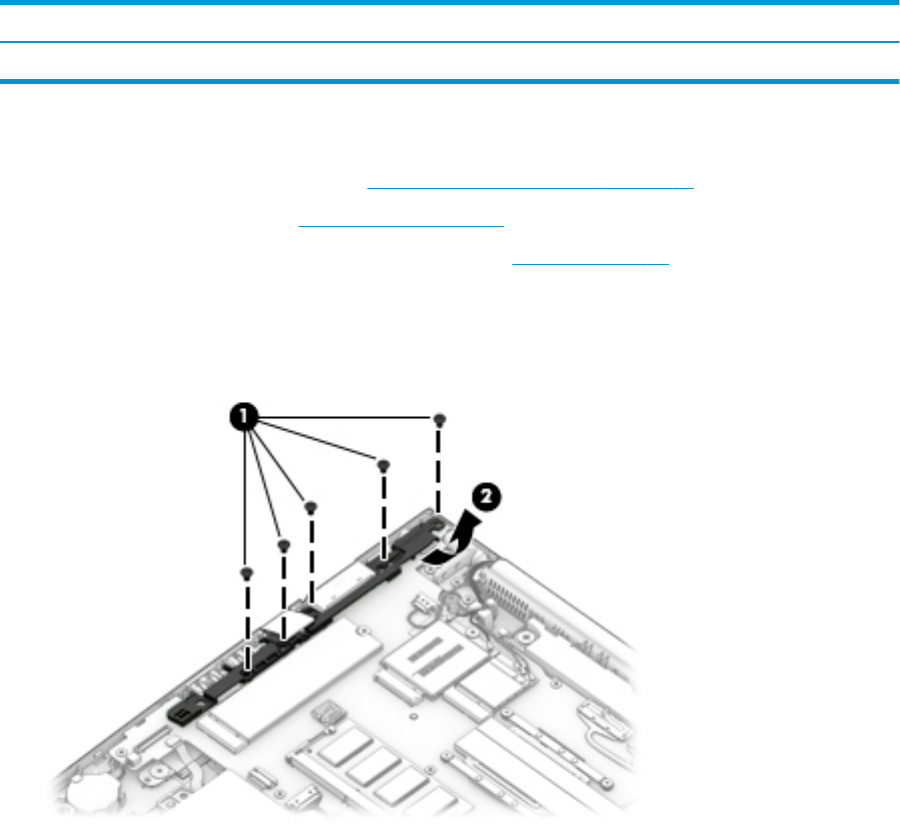 1. Remove the ve Phillips M2.5 × 4.0 screws (1) that secure the assembly to the computer.