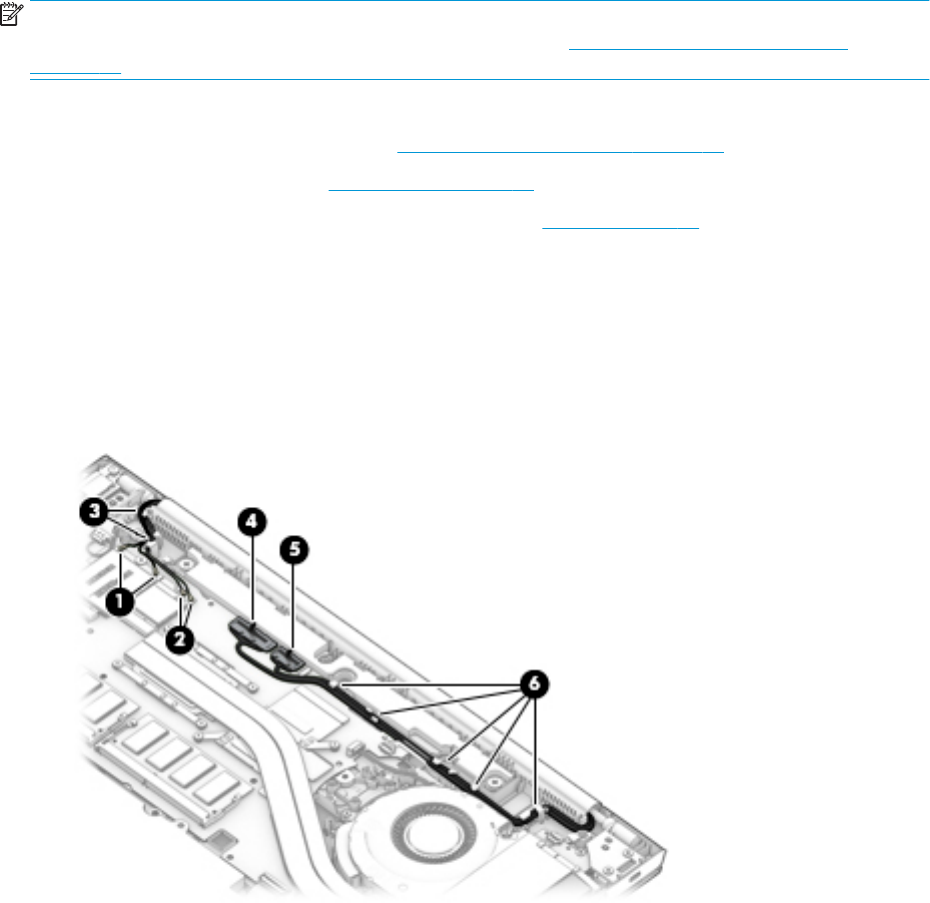 1. Disconnect the antenna cables from the WWAN module (1) and the WLAN module (2).