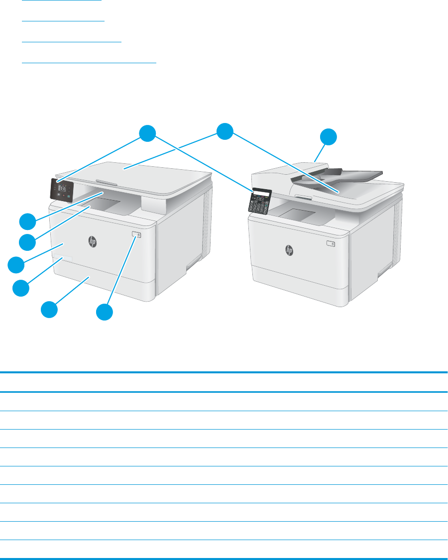 Tabell 1-1 Skriveren sett forfra