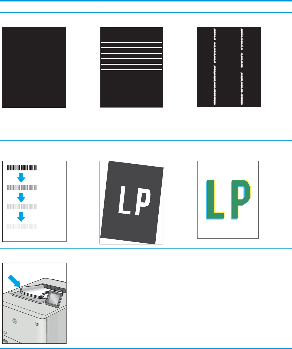 Tabell 9-24 Svart side på side 128 Tabell 9-25 Båndfeil på side 128 Tabell 9-26 Stripefeil på side 129