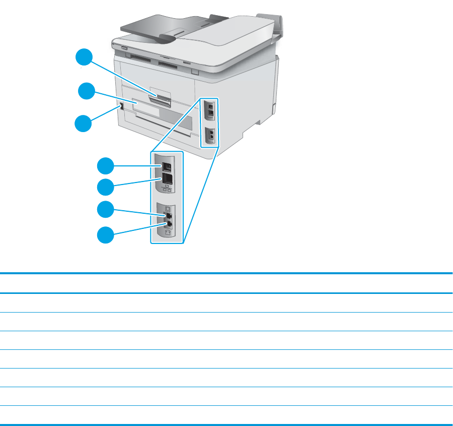 6 Port for linje inn til faks for tilkobling av en fakslinje til skriveren (bare faksmodeller)