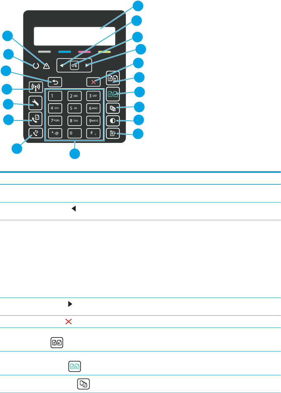 Bruk denne knappen til å avbryte en utskriftsjobb eller lukke kontrollpanelmenyer.