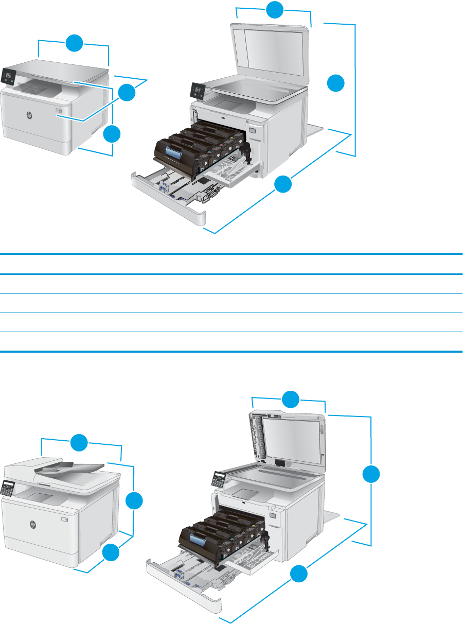 Mål Skriveren når alt er lukket Skriveren når alt er åpent