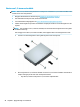 5. Trekk utløserspaken nesten helt bakerst på harddisken utover (1). Når du drar ut utløserspaken, løft opp