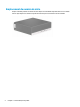 Conversion du mode Bureau en mode Tour L'ordinateur compact peut être positionné comme une tour à l'aide d'un socle pour tour en option que vous pouvez acheter auprès de HP. REMARQUE : Pour stabiliser l'ordinateur en orientation tour, HP vous recommande d'utiliser un socle en option. 1. Préparez l'ordinateur pour le démontage. Reportez-vous à la rubrique Préparation avant le démontage à la page 5. 2.