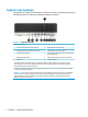 Τμήματα πίσω πλευράς Πίνακας 1-2 Στοιχεία πίσω πλευράς Τμήματα πίσω πλευράς 1 Υποδοχή εισόδου ήχου 6 Υποδοχές οθόνης DisplayPort (2) 2 Σειριακή θύρα (προαιρετική) 7 Προαιρετική θύρα 3 Υποδοχή RJ-45 (δικτύου) 8 Θύρες USB (2) 4 Υποδοχή καλωδίου τροφοδοσίας 9 Θύρες USB SuperSpeed (4)* 5 Υποδοχή εξόδου ήχου για συσκευές ήχου που τροφοδοτούνται με ρεύμα * Αυτή η θύρα συνδέει μια συσκευή USB, παρέχει μεταφορά δεδομένων υψηλής ταχύτητας και, ακόμα και όταν είναι απενεργοποιημένος ο υπολογιστής,