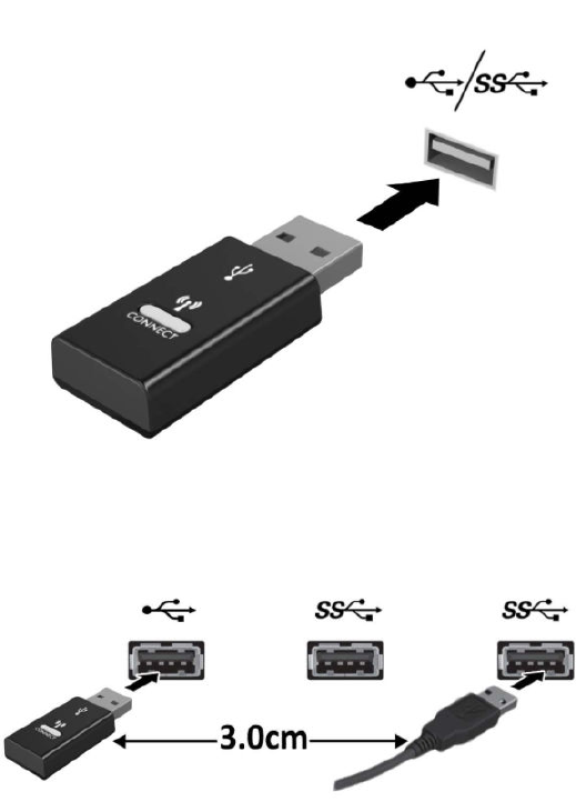 minstens 3 centimeter van het USB SuperSpeed-apparaat.