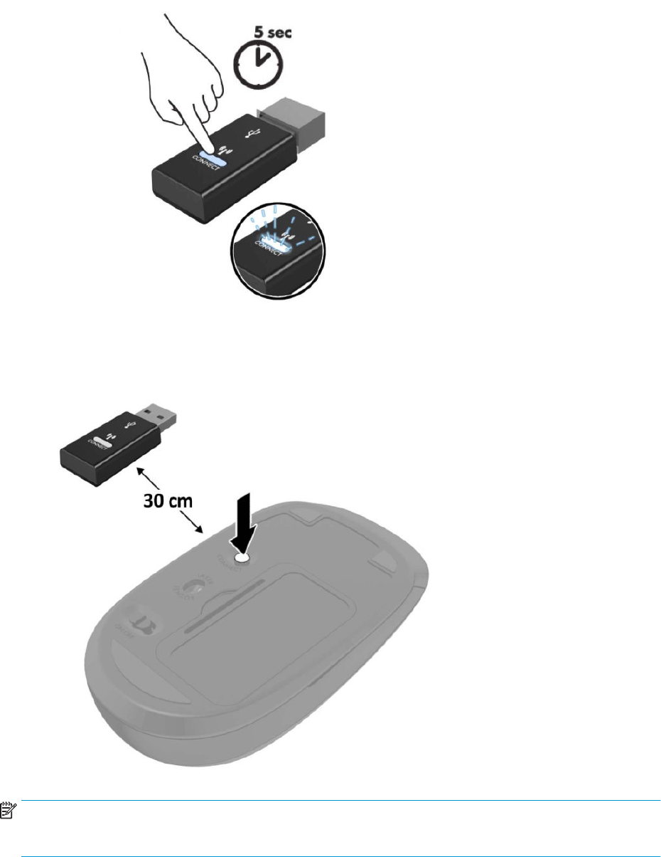 5. Druk ongeveer vijf seconden op de verbindingsknop van de ontvanger. Het aan/uit-lampje van de