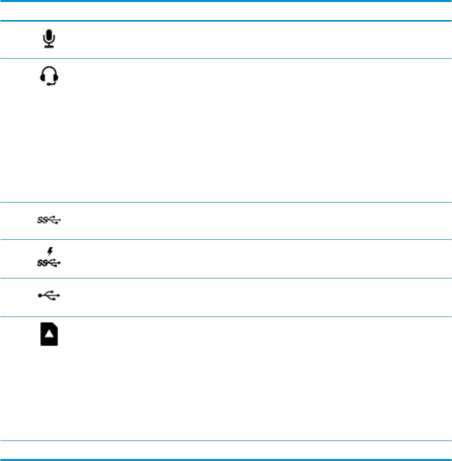 (6) USB 3.x SuperSpeed port Connects a USB device, such as a cell phone, camera, activity tracker, or