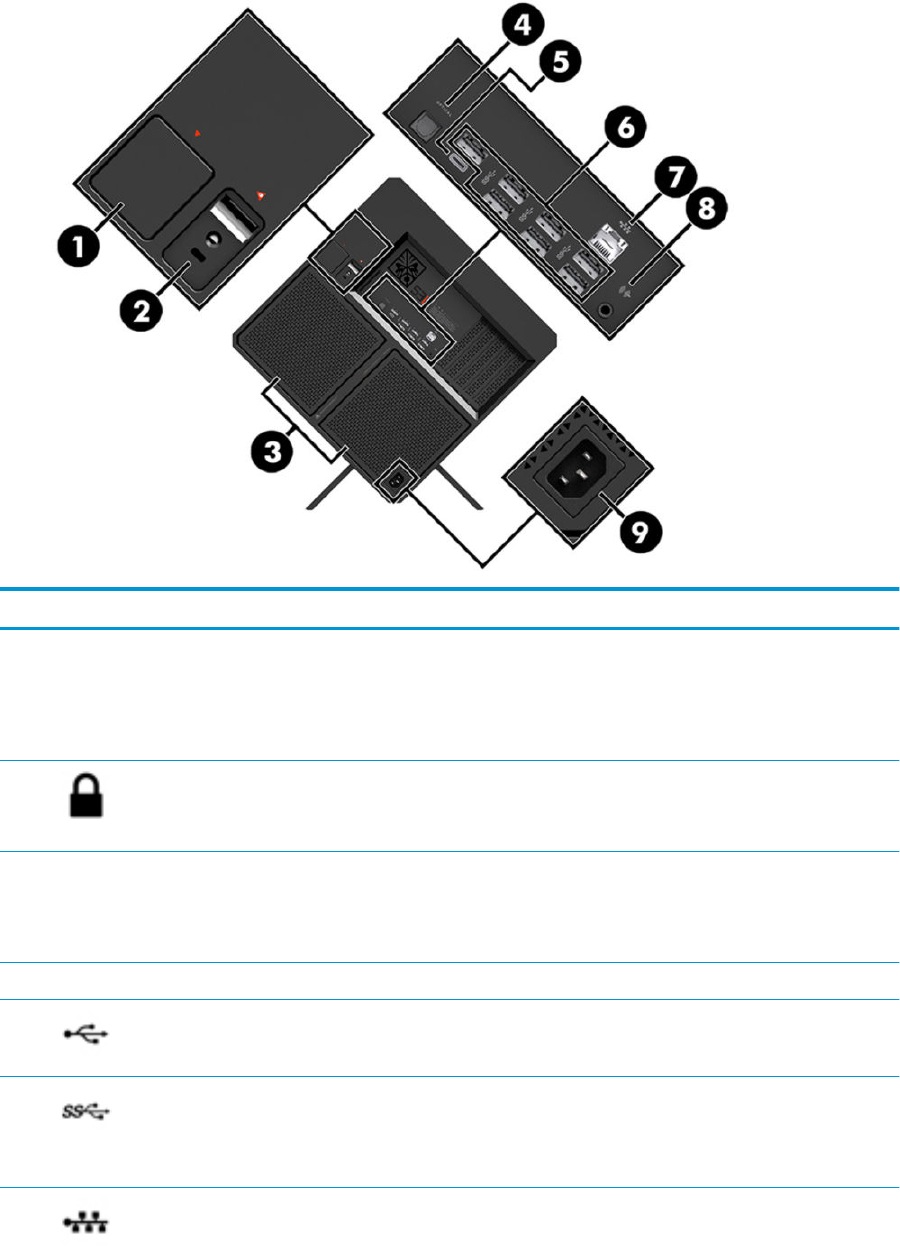 (2) Security cable slot Attaches an optional security cable to the computer.