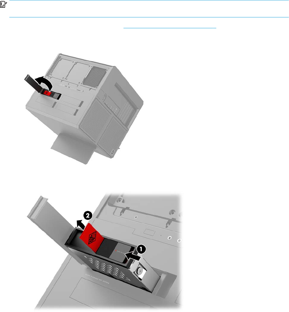 2. Pull up on the right side of the hard drive door, and then rotate the door to the left. Note that the door