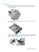 a. 3.5-inch hard drive: Remove the four mounting screws (1) from the sides of the cage, and then lift