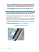 3. Slide the drive cage latch to the left (1), and then use the pull tab to pull the drive cage out of the case